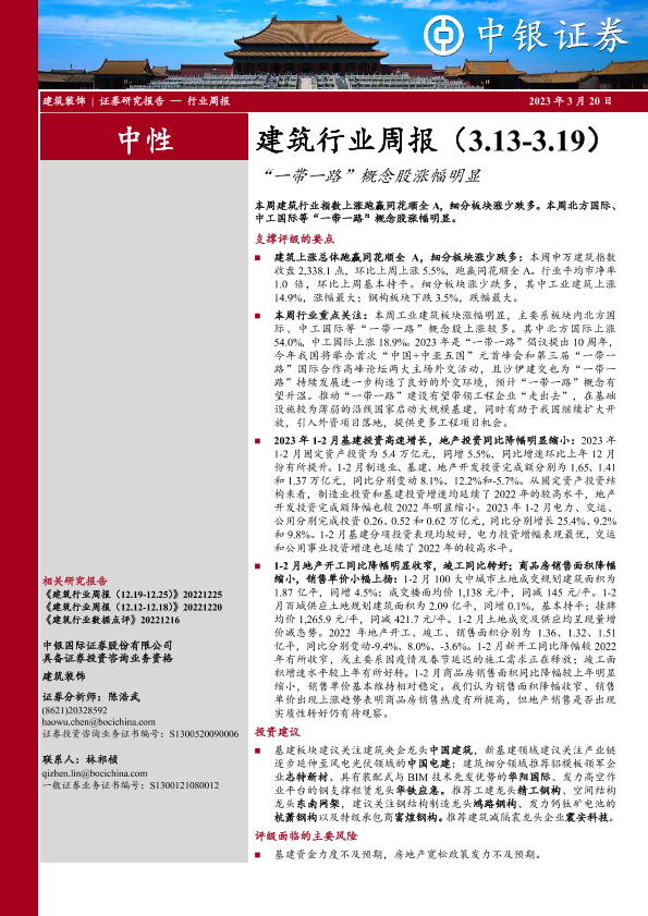 【中银证券】【20230320】建筑行业周报:“一带一路”概念股涨幅明显-14页