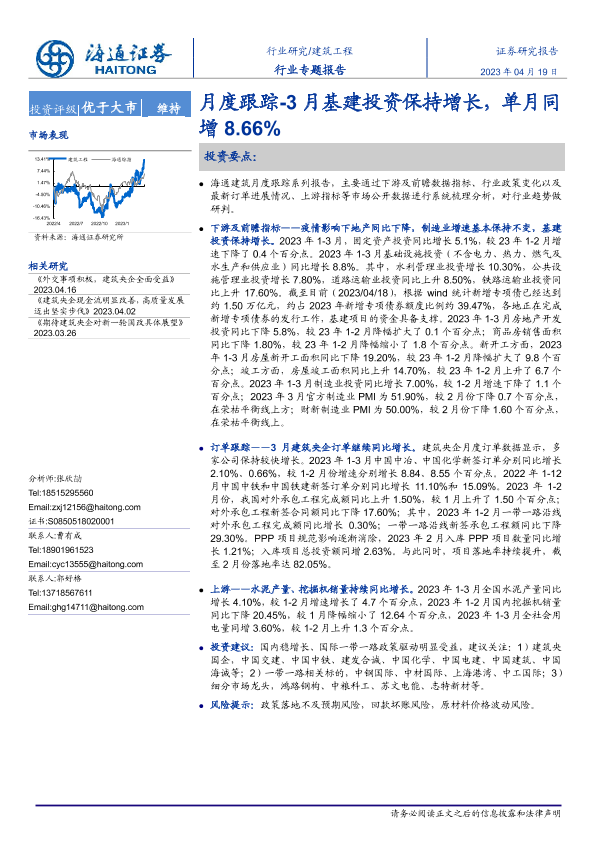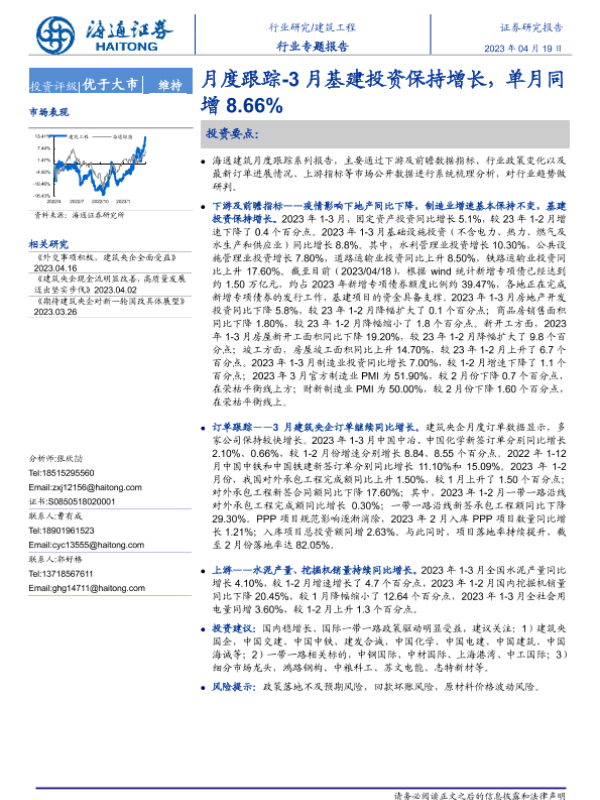 【海通证券】【20230419】建筑工程行业专题报告:月度跟踪-3月基建投资保持增长,单月同增8.66%-14页