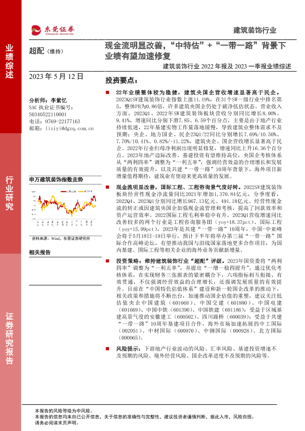 一带一路 业绩修复 中特估 建筑装饰 现金流
