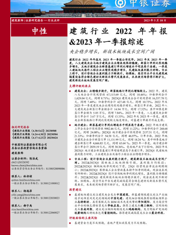 【中银证券】【20230510】建筑行业2022年年报&2023年一季报综述-34页