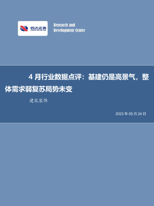 【信达证券】【20230524】建筑装饰4月行业数据点评:基建仍是高景气,整体需求弱复苏局势未变-18页