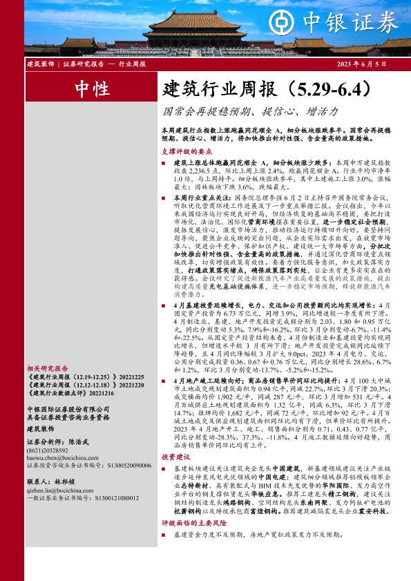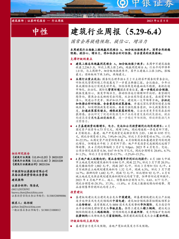 【中银证券】【20230605】建筑行业周报:国常会再提稳预期、提信心、增活力-16页