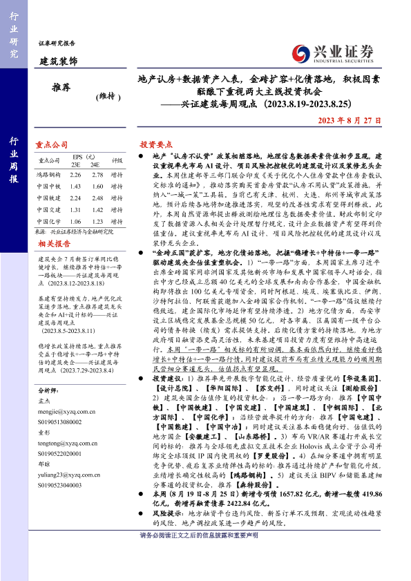 一带一路 地方化债 建筑装饰 房地产政策 数据资产