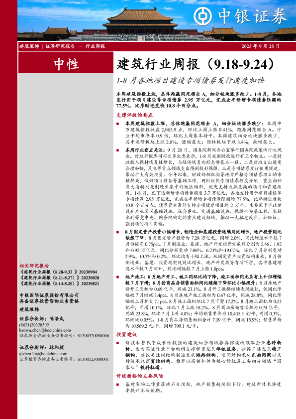 【中银证券】【20230925】1-8月各地项目建设专项债券发行速度加快-17页