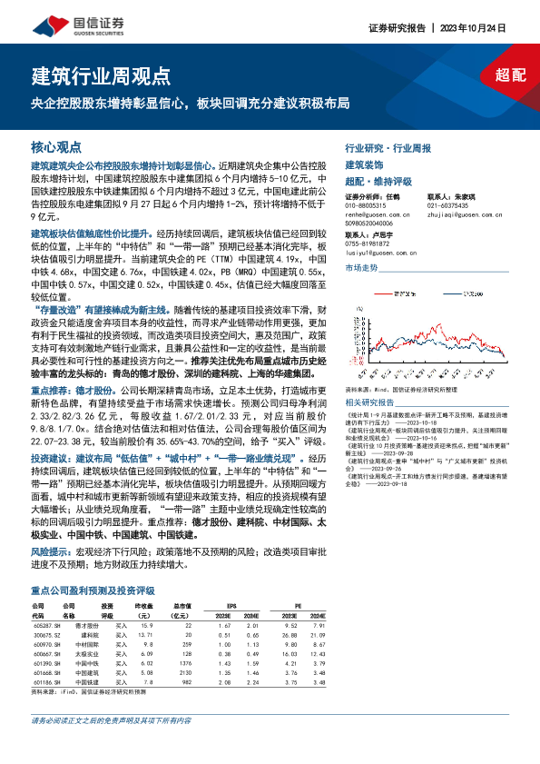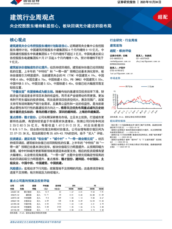 【国信证券】【20231024】建筑行业周观点:央企控股股东增持彰显信心,板块回调充分建议积极布局-11页
