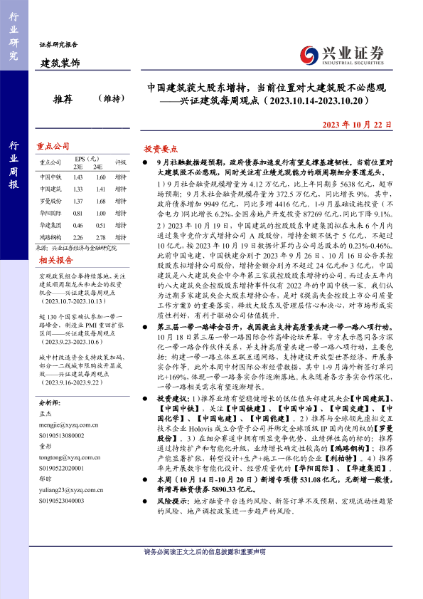 【兴业证券】【20231022】中国建筑获大股东增持,当前位置对大建筑股不必悲观-31页