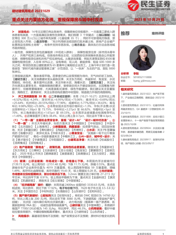【民生证券】【20231029】建材建筑周观点:重点关注内蒙地方化债,重视保障房&城中村改造-22页
