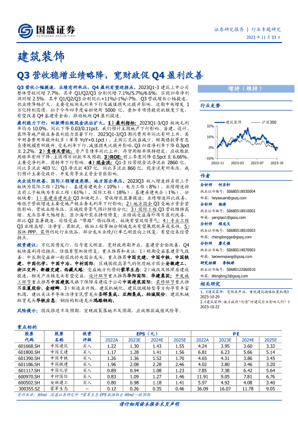 Q3营收 Q4盈利改善 业绩略降 宽财政 建筑装饰