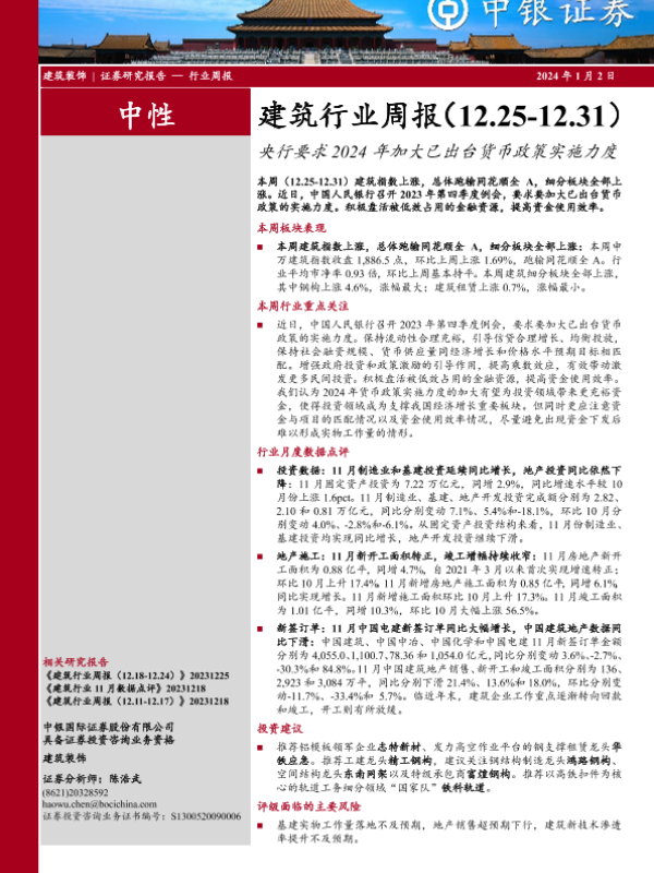 【中银证券】【20240102】建筑行业周报:央行要求2024年加大已出台货币政策实施力度-16页