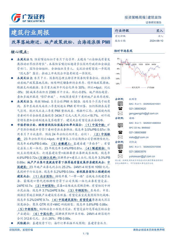 【广发证券】【20240610】建筑行业周报:改革落地渐近、地产政策放松、出海逐浪强PMI-13页