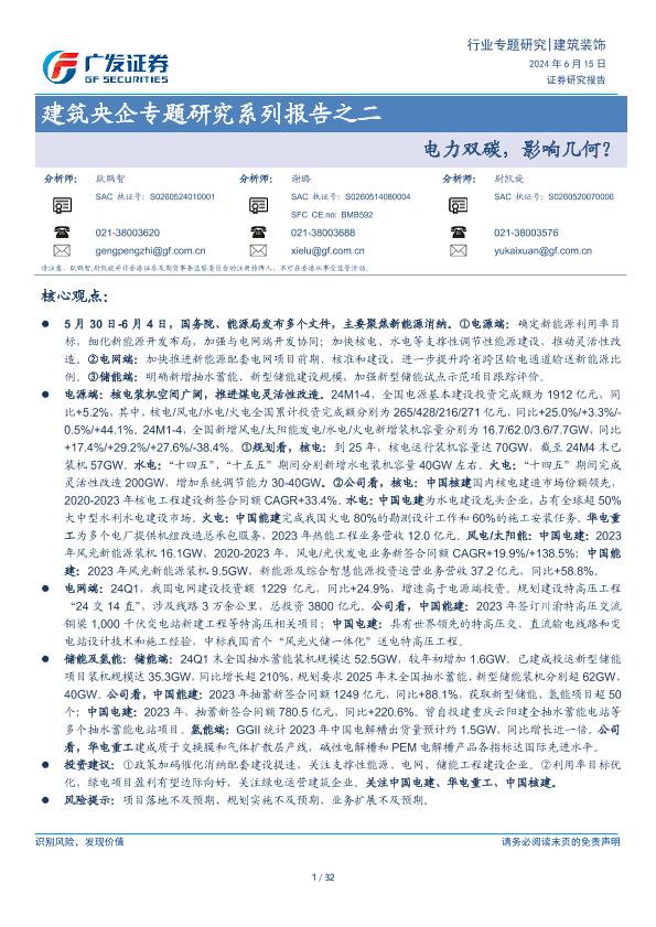 【广发证券】【20240615】建筑央企专题研究系列报告之二:电力双碳,影响几何?-32页