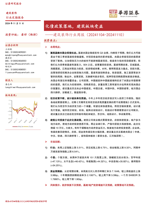 【华源证券】【20241111】建筑装饰行业周报:化债政策落地,建筑板块受益-13页