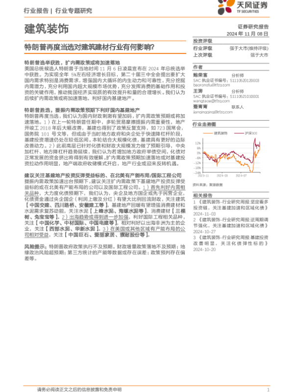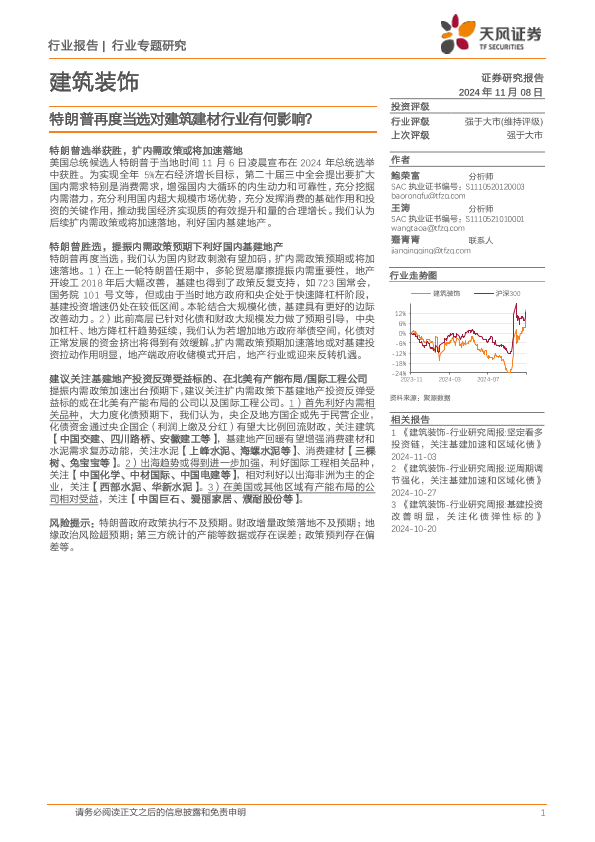 【天风证券】【20241108】建筑装饰行业专题研究:特朗普再度当选对建筑建材行业有何影响-14页