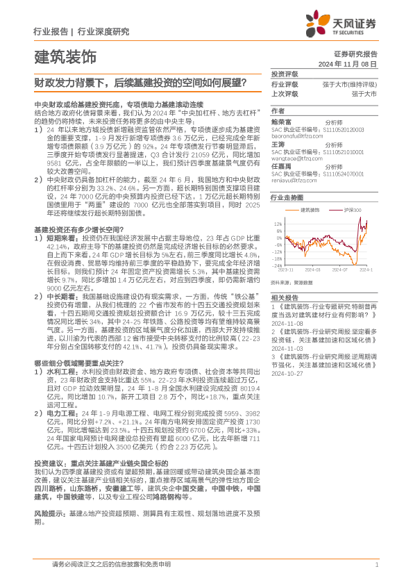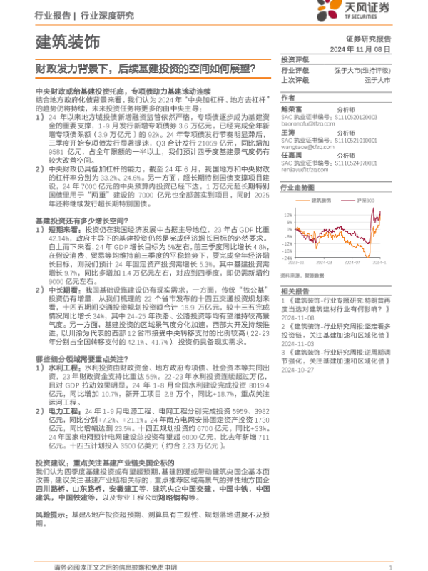基建投资 建筑装饰 投资建议 行业分析 财政政策