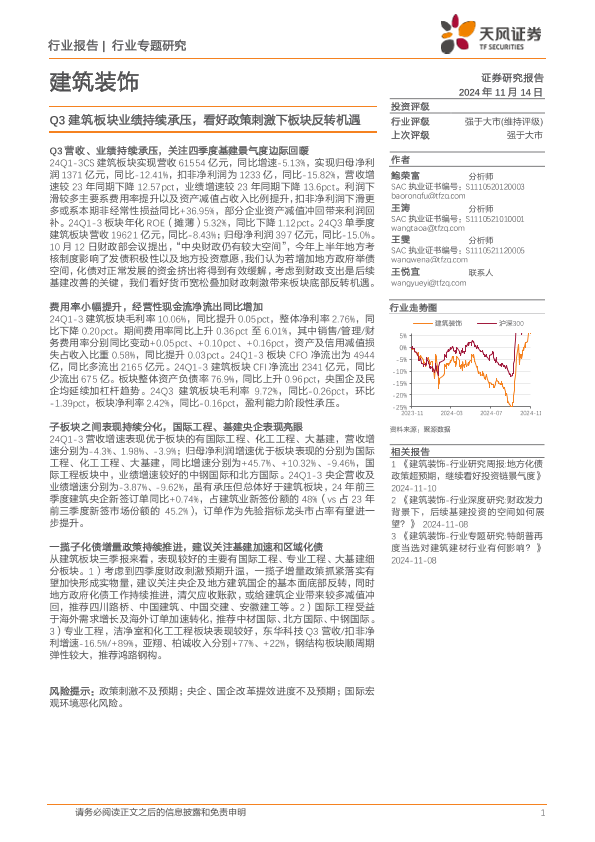 【天风证券】【20241114】Q3建筑板块业绩持续承压,看好政策刺激下板块反转机遇-27页