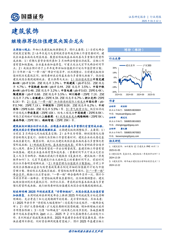 【国盛证券】【20250112】建筑装饰行业周报:继续推荐低估值建筑央国企龙头-13页