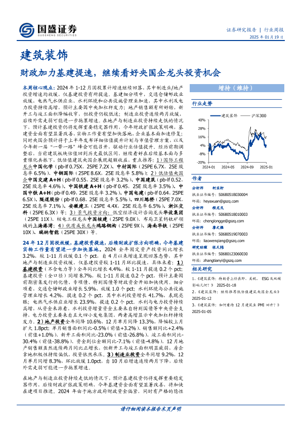 【国盛证券】【20250119】建筑装饰行业周报:财政加力基建提速,继续看好央国企龙头投资机会-14页