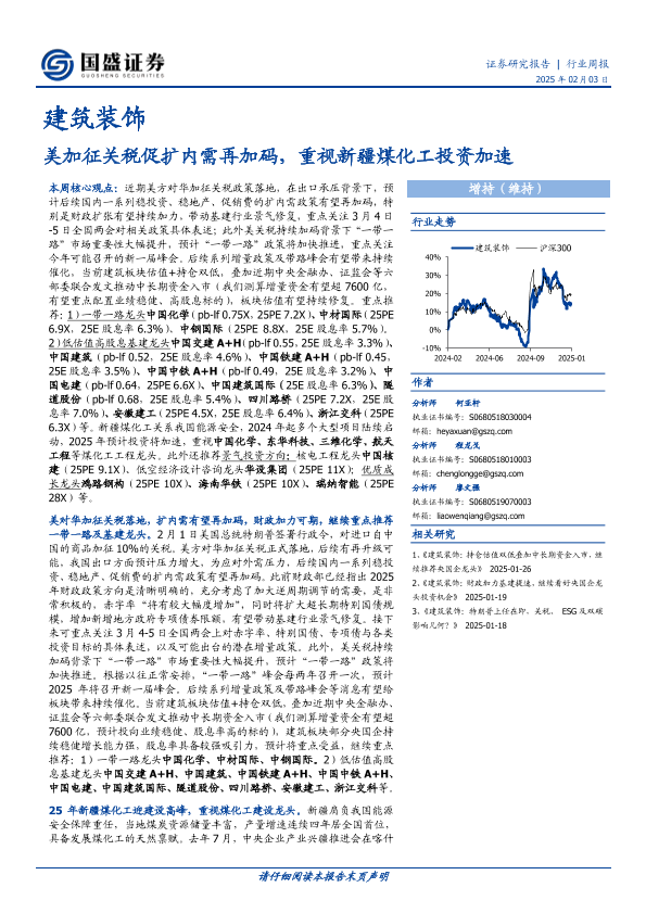 【国盛证券】【20250203】建筑装饰行业周报:美加征关税促扩内需再加码,重视新疆煤化工投资加速-11页