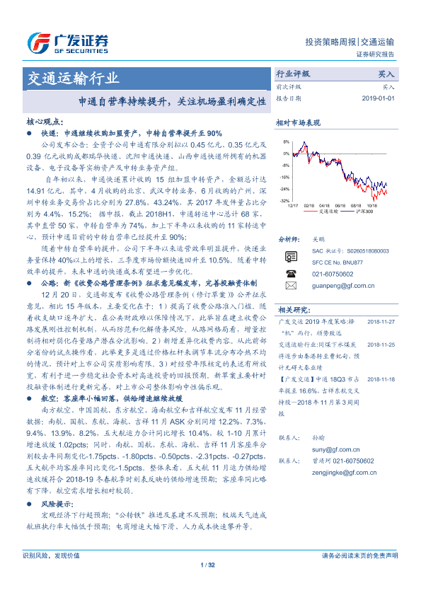 【广发证券】【20190101】交通运输行业投资策略周报:申通自营率持续提升,关注机场盈利确定性-32页