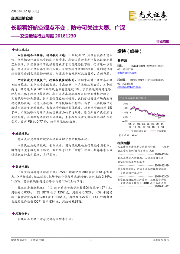 【光大证券】【20181230】交通运输行业周报:长期看好航空观点不变,防守可关注大秦、广深-6页