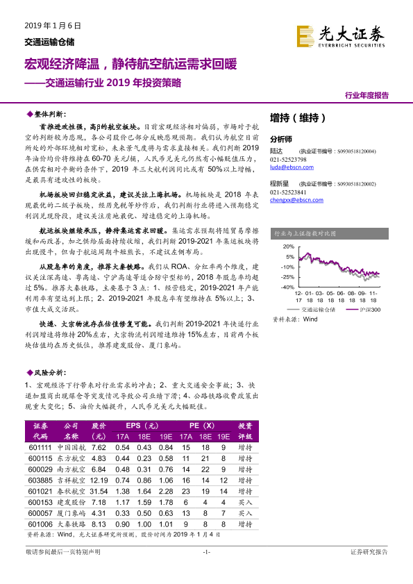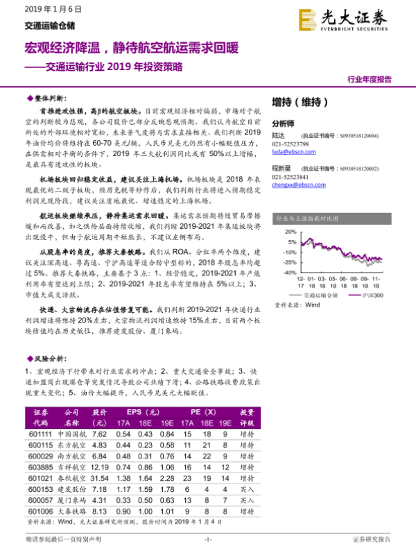 【光大证券】【20190106】交通运输行业2019年投资策略:宏观经济降温,静待航空航运需求回暖-33页