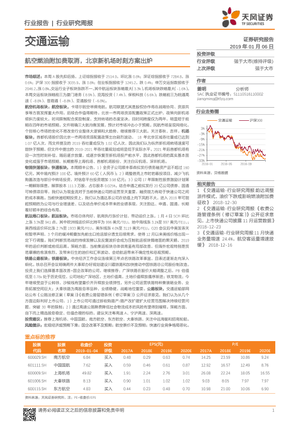 【天风证券】【20190106】航空燃油附加费取消,北京新机场时刻方案出炉-16页