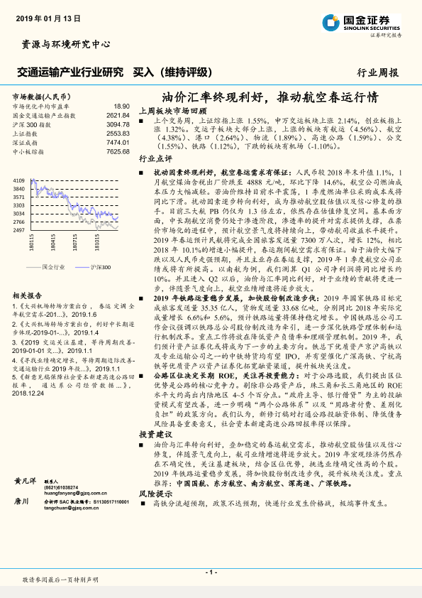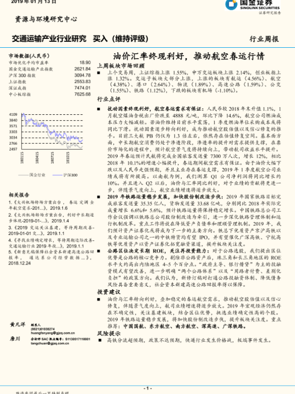 【国金证券】【20190113】交通运输产业行业研究:油价汇率终现利好,推动航空春运行情-21页