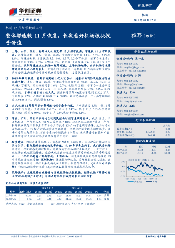 【华创证券】【20190117】机场12月经营数据点评:整体增速较11月恢复,长期看好机场板块投资价值-5页