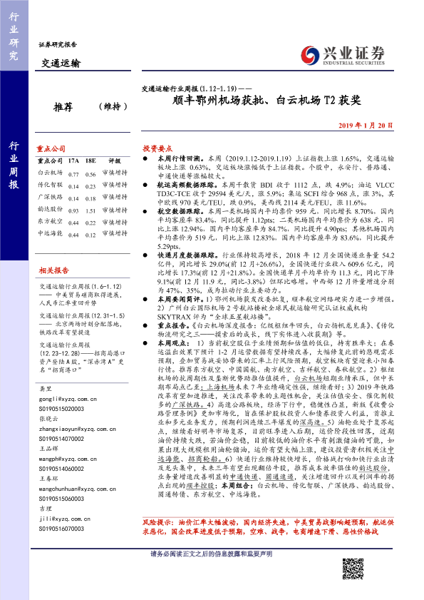 兴业证券 交通运输仓储邮政 2019年 PDF 772.37 KB