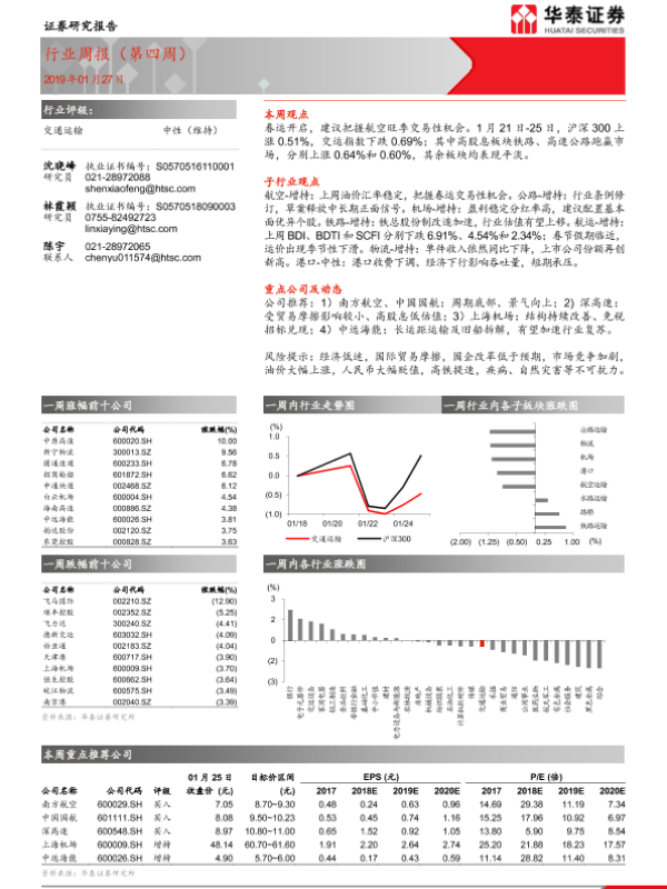 【华泰证券】【20190127】交通运输行业周报(第四周)-11页