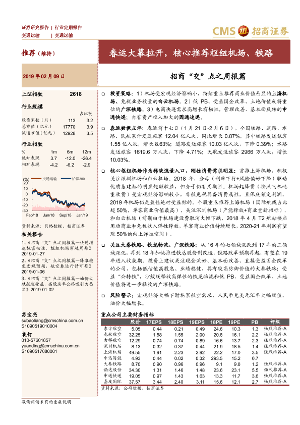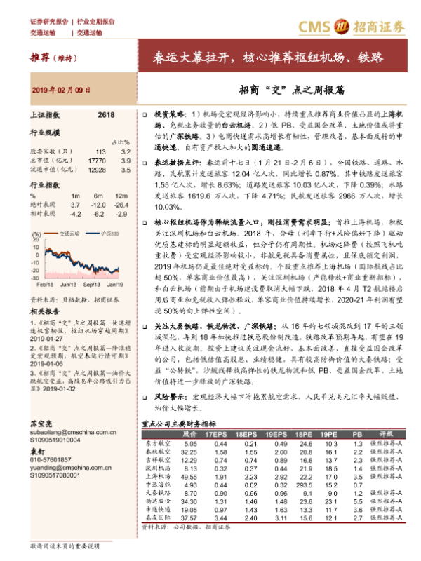 【海通证券】【20190209】招商“交”点之周报篇:春运大幕拉开,核心推荐枢纽机场、铁路-23页