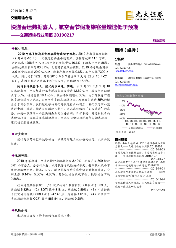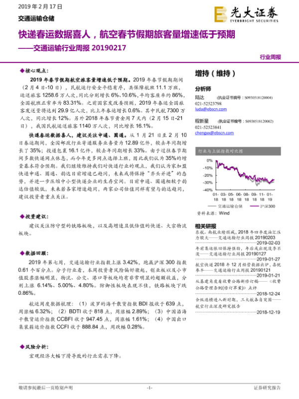 【光大证券】【20190217】快递春运数据喜人,航空春节假期旅客量增速低于预期-8页