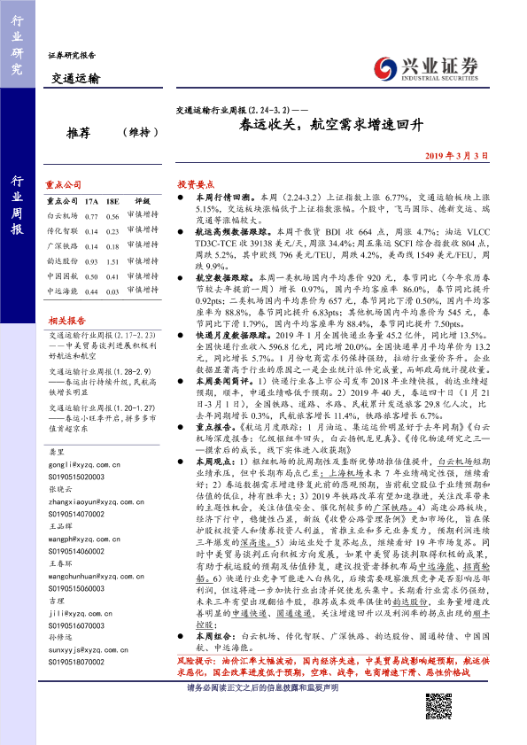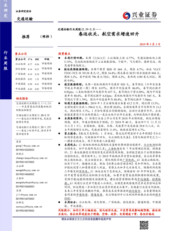 【兴业证券】【20190303】交通运输行业周报:春运收关,航空需求增速回升-15页