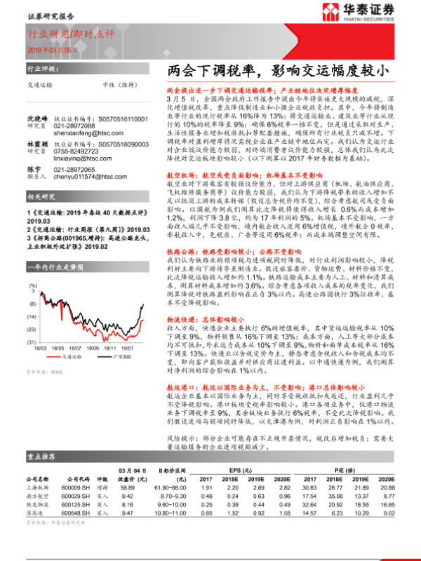 【华泰证券】【20190305】两会下调税率,影响交运幅度较小-2页