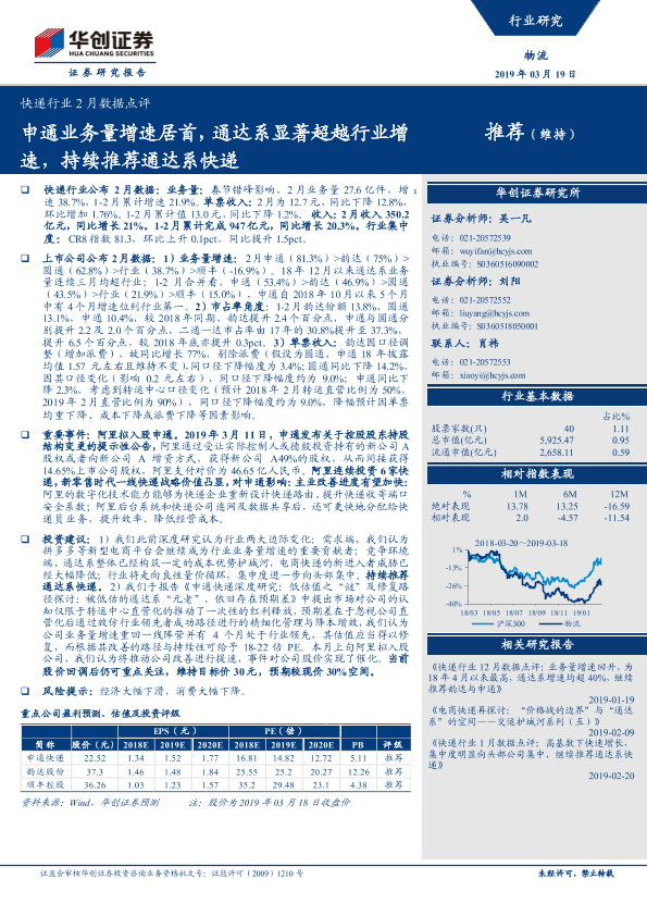 【华创证券】【20190319】快递行业2月数据点评:申通业务量增速居首,通达系显著超越行业增速,持续推荐通达系快递-6页