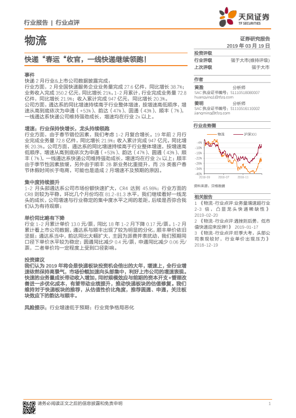 【天风证券】【20190319】快递“春运”收官,一线快递继续领跑!-6页