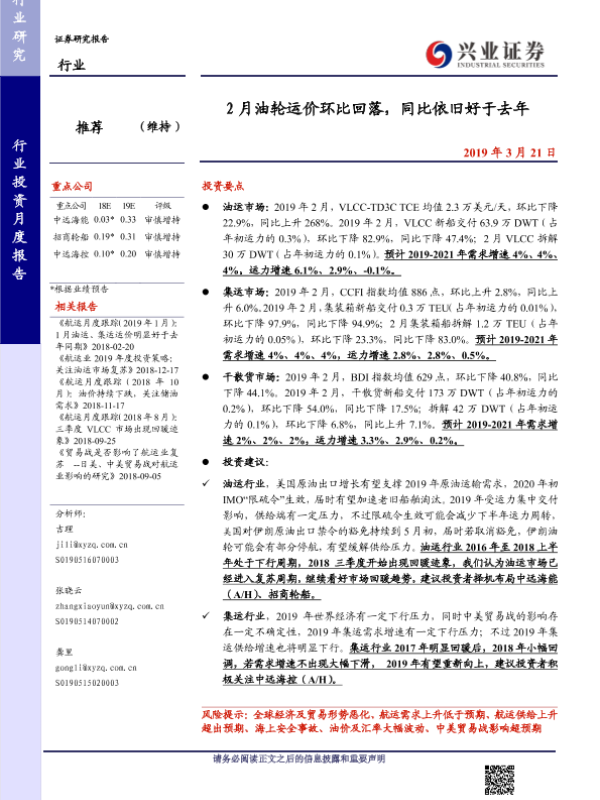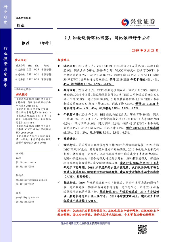 【兴业证券】【20190321】2月油轮运价环比回落,同比依旧好于去年-24页