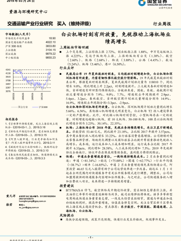 【国金证券】【20190324】交通运输产业行业周报:白云机场时刻有所放量,免税推动上海机场业绩高增长-21页