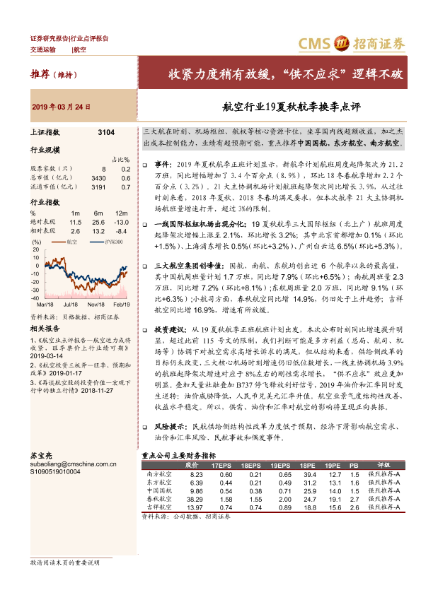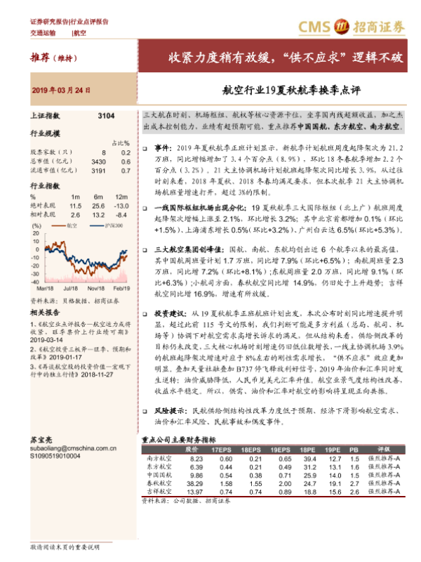 【海通证券】【20190324】航空行业19夏秋航季换季点评:收紧力度稍有放缓,“供不应求”逻辑不破-9页