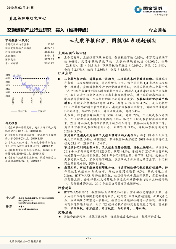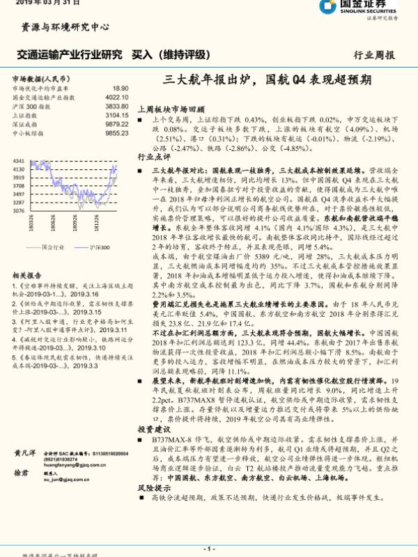 【国金证券】【20190331】交通运输产业行业研究周报:三大航年报出炉,国航Q4表现超预期-23页