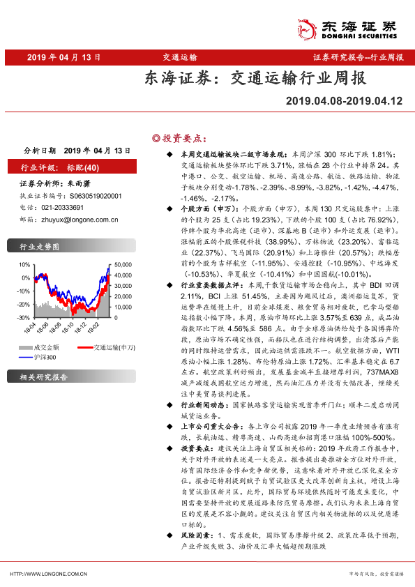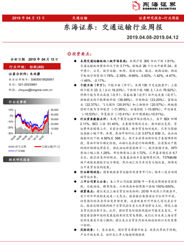 【东海证券】【20190413】交通运输行业周报-10页