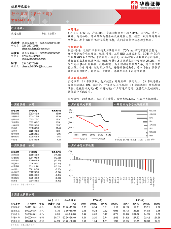 【华泰证券】【20190414】交通运输行业周报(第十五周)-9页