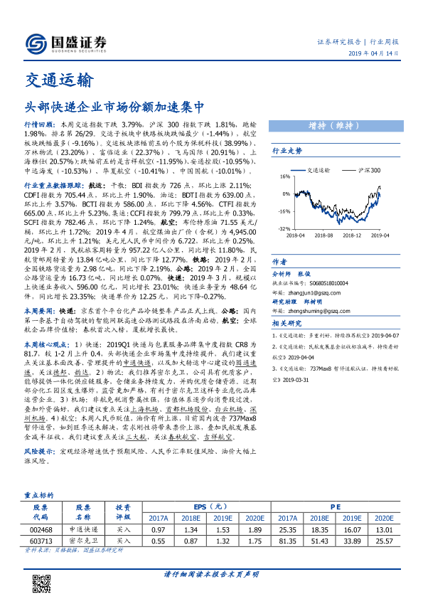 【国盛证券】【20190414】交通运输行业周报:头部快递企业市场份额加速集中-17页