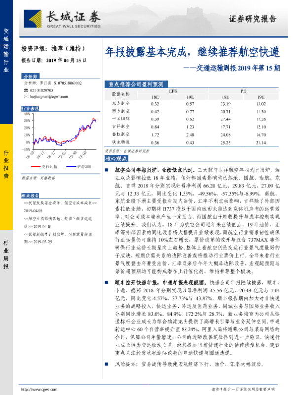 【长城证券】【20190415】交通运输周报2019年第15期:年报披露基本完成,继续推荐航空快递-16页