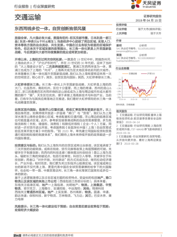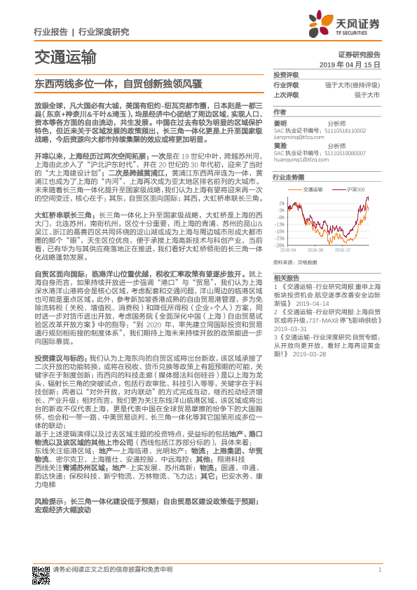 【天风证券】【20190415】交通运输行业深度研究:东西两线多位一体,自贸创新独领风骚-17页