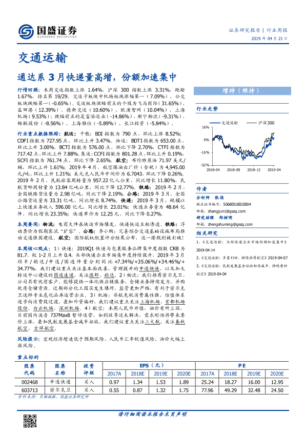 【国盛证券】【20190421】通达系3月快递量高增,份额加速集中-17页
