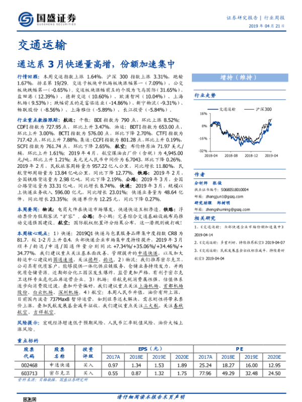 国盛证券 交通运输仓储邮政 2019年 PDF 1.32 MB