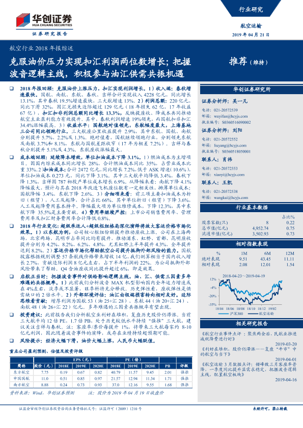 【华创证券】【20190421】航空行业2018年报综述:克服油价压力实现扣汇利润两位数增长;把握波音逻辑主线,积极参与油汇供需共振机遇-34页