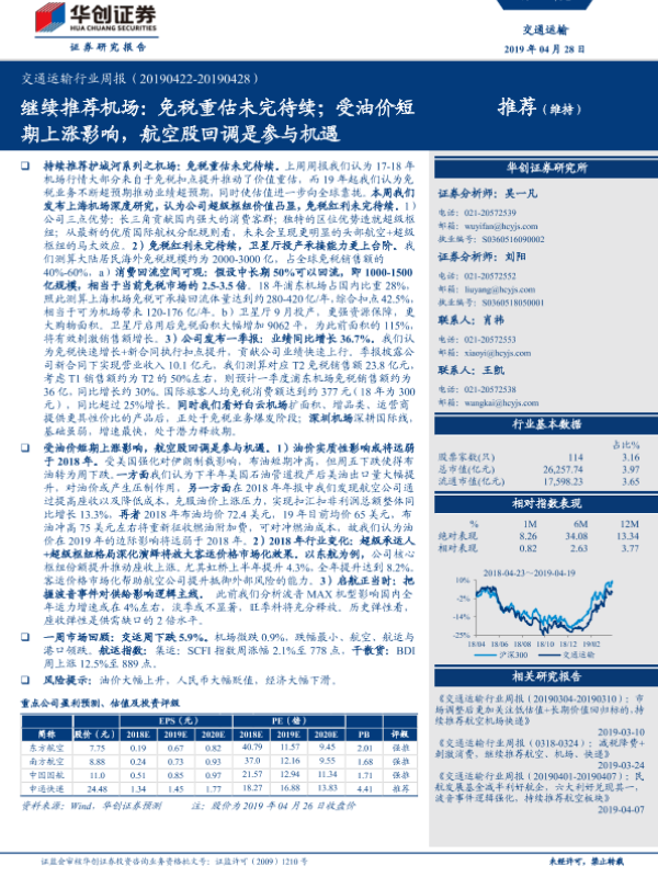 【华创证券】【20190428】交通运输行业周报:继续推荐机场和航空股回调机遇-9页