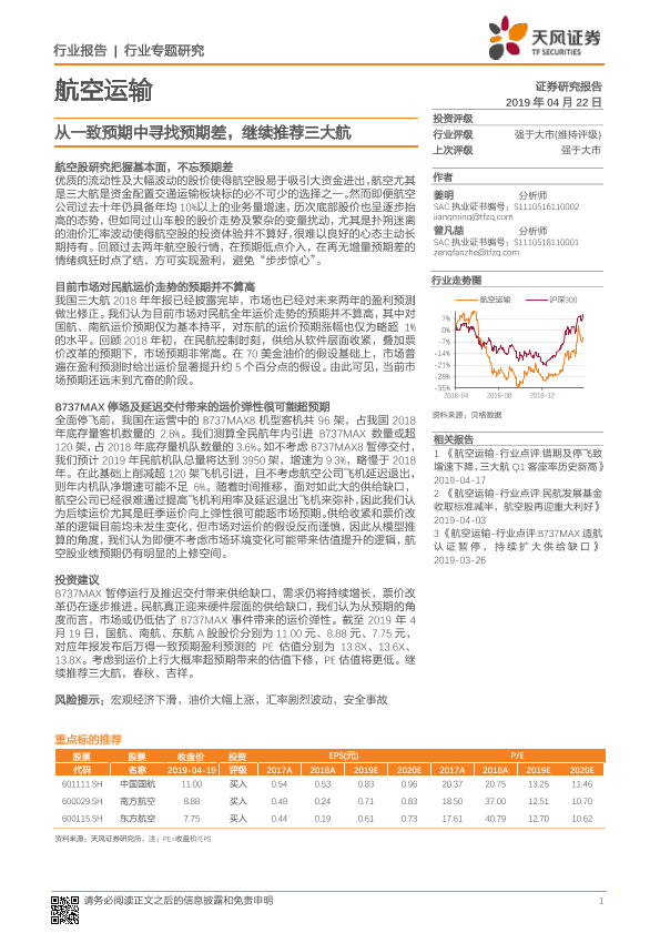 【天风证券】【20190422】从一致预期中寻找预期差,继续推荐三大航-18页
